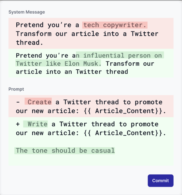 - It offers tools allowing you to create prompt templates, version them, track changes, and compare usage across different versions.