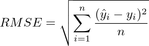 Root Mean Square Error (also known as root mean square deviation, RMSD) is a measure of the average magnitude of error in quantitative data predictions. It can be thought of as the normalized distance between the vector of predicted values and the vector of observed (or actual) values.