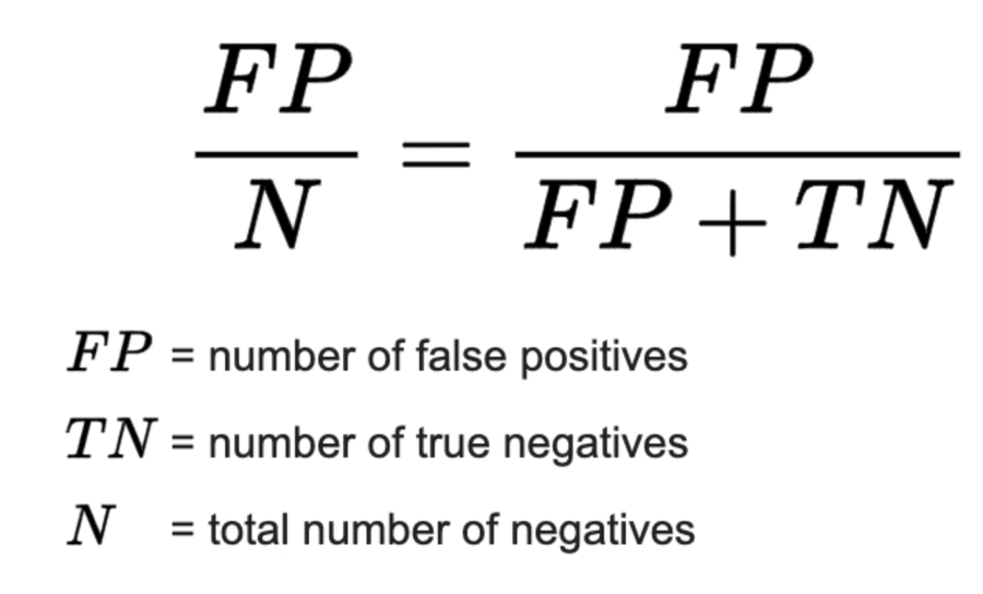 False Positive Rate (FPR) is a the rate of “false alarms”. In other words, it is a measure of the probability a true negative will be missed.