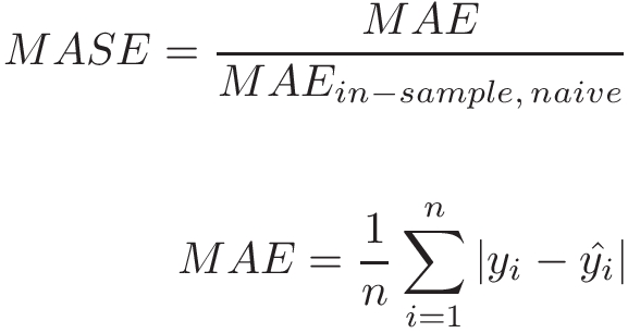 Mean absolute scaled error (MASE) is an accuracy metric for forecasting. It is the mean absolute error of the forecast values, normalized by the naive forecast. The naïve forecast refers to a simple forecasting method that uses the demand value of a previous time point as the forecast for the next time point. A lower MASE is considered to have higher accuracy.