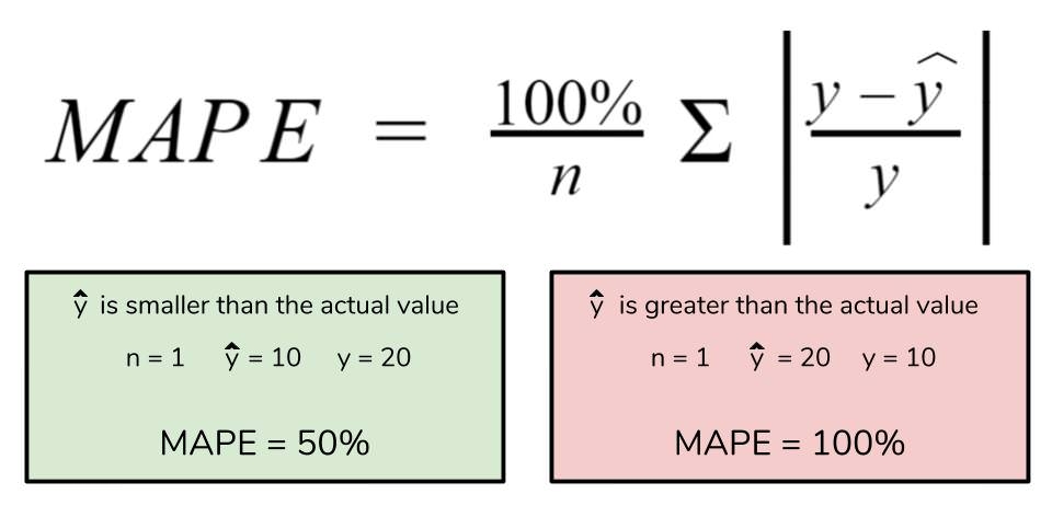 Mean Absolute Percentage Error is one of the most common metrics of model prediction accuracy and the percentage equivalent of MAE. MAPE measures the average magnitude of error produced by a model, or how far off predictions are on average. See MAE for considerations when using this metric.