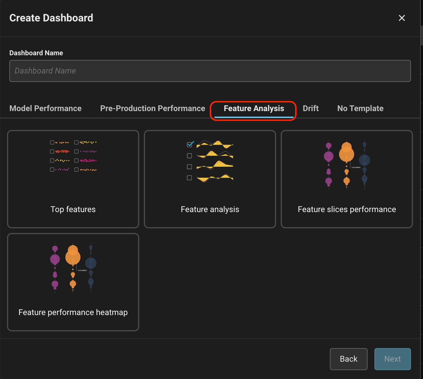 Step 1: Select Feature Analysis Template