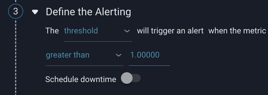 Schedule downtime toggle under Define the Alerting. In this section, you can customize the time window during which the monitor should not be evaluated. You also need to specify the start date and set the cadence for the downtime schedule.