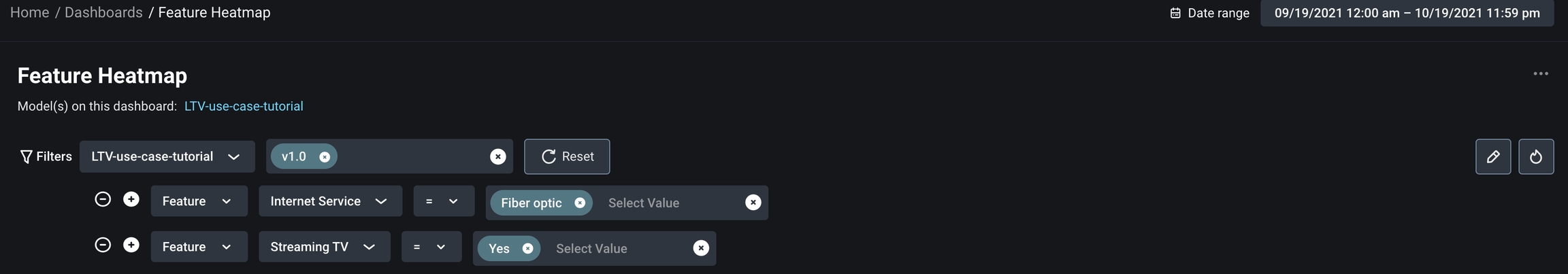We could pay close attention to feature/value combinations that could be indicative of model exploitations. In the case of LTV as stated in the colab, we used filters on the Feature Performance Heatmap to narrow down Fiber Optic in Internet Service and Yes in Streaming TV across Cities.