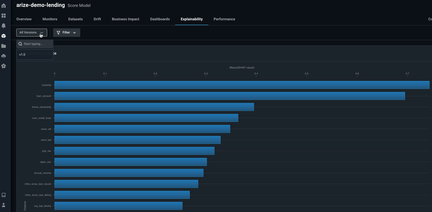 Log feature importances to the Arize platform to explain your model’s predictions. By logging these values, you gain the ability to view the global feature importances of your predictions as well as the ability to perform global and cohort prediction-based analysis to compare feature importances for your model’s features.