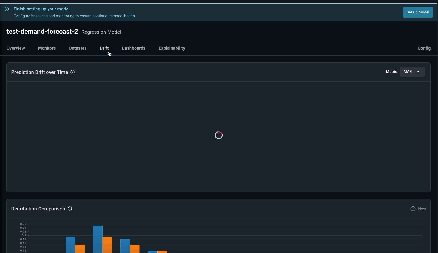 Mean Error alone is not enough to tell the story. In a feature drift event where there is both over-prediction and under prediction, mean error could be cancelled out to be zero. This is why we will not only need monitors, but a side-by-side chart to allow us to compare the magnitude and direction of both Mean Absolute Error and Mean Error.