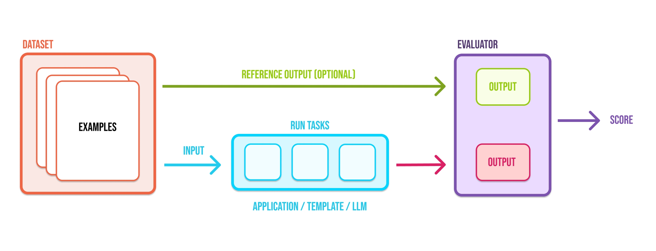 outputs for assessing your application. Datasets allow you to collect data from production, staging, evaluations, and even manually. The examples collected are used to run experiments and evaluations to track improvements to your prompt, LLM, or other parts of your LLM application.