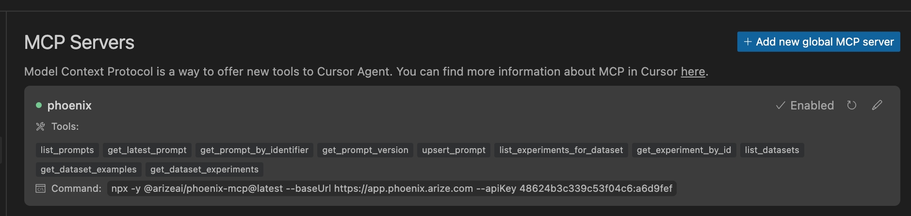 You can access Phoenix prompts, experiments, and datasets through Cursor!