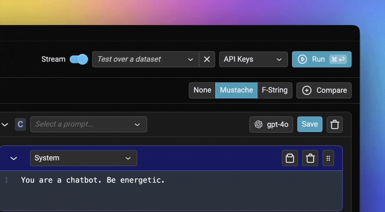• Prompt Playground - Play with prompts, models, invocation parameters and track your progress via tracing and experiments