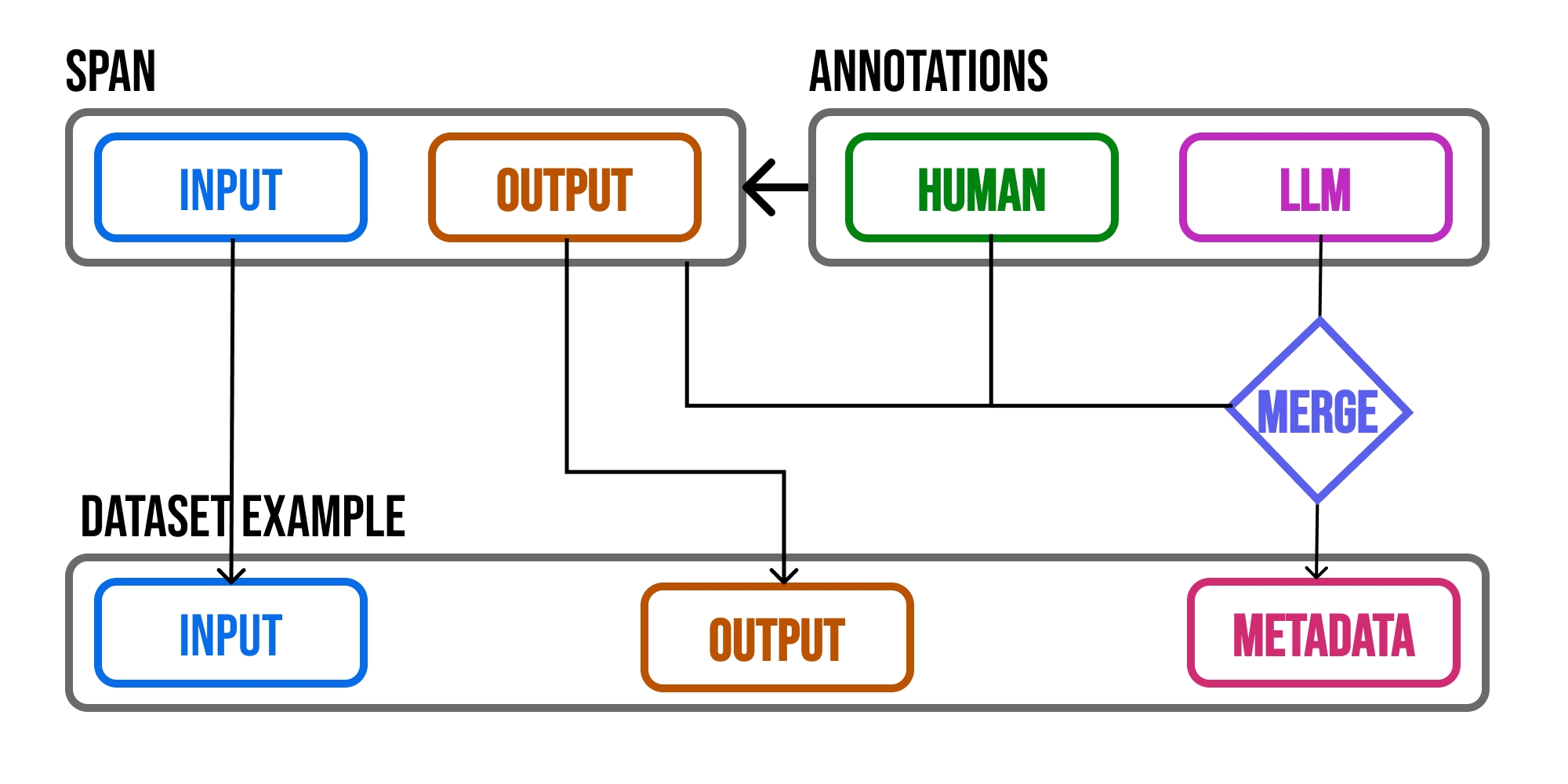 Annotations can help you share valuable insight about how your application is performing. However making these insights actionable can be difficult. With Phoenix, the annotations you add to your trace data is propagated to datasets so that you can use the annotations during experimentation.