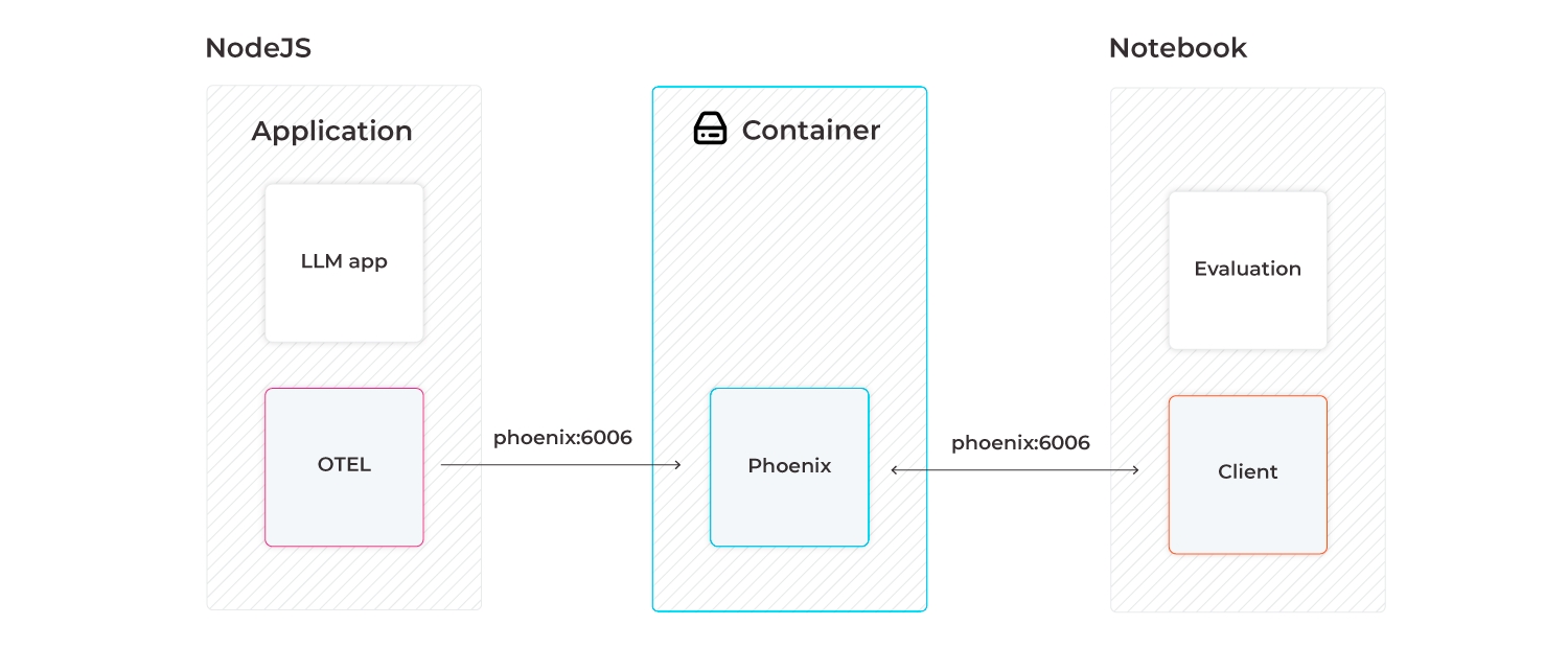 Phoenix is written and maintained in Python to make it natively runnable in Python notebooks. However, it can be stood up as a trace collector so that your LLM traces from your NodeJS application (e.g., LlamaIndex.TS, Langchain.js) can be collected. The traces collected by Phoenix can then be downloaded to a Jupyter notebook and used to run evaluations (e.g., LLM Evals, Ragas).