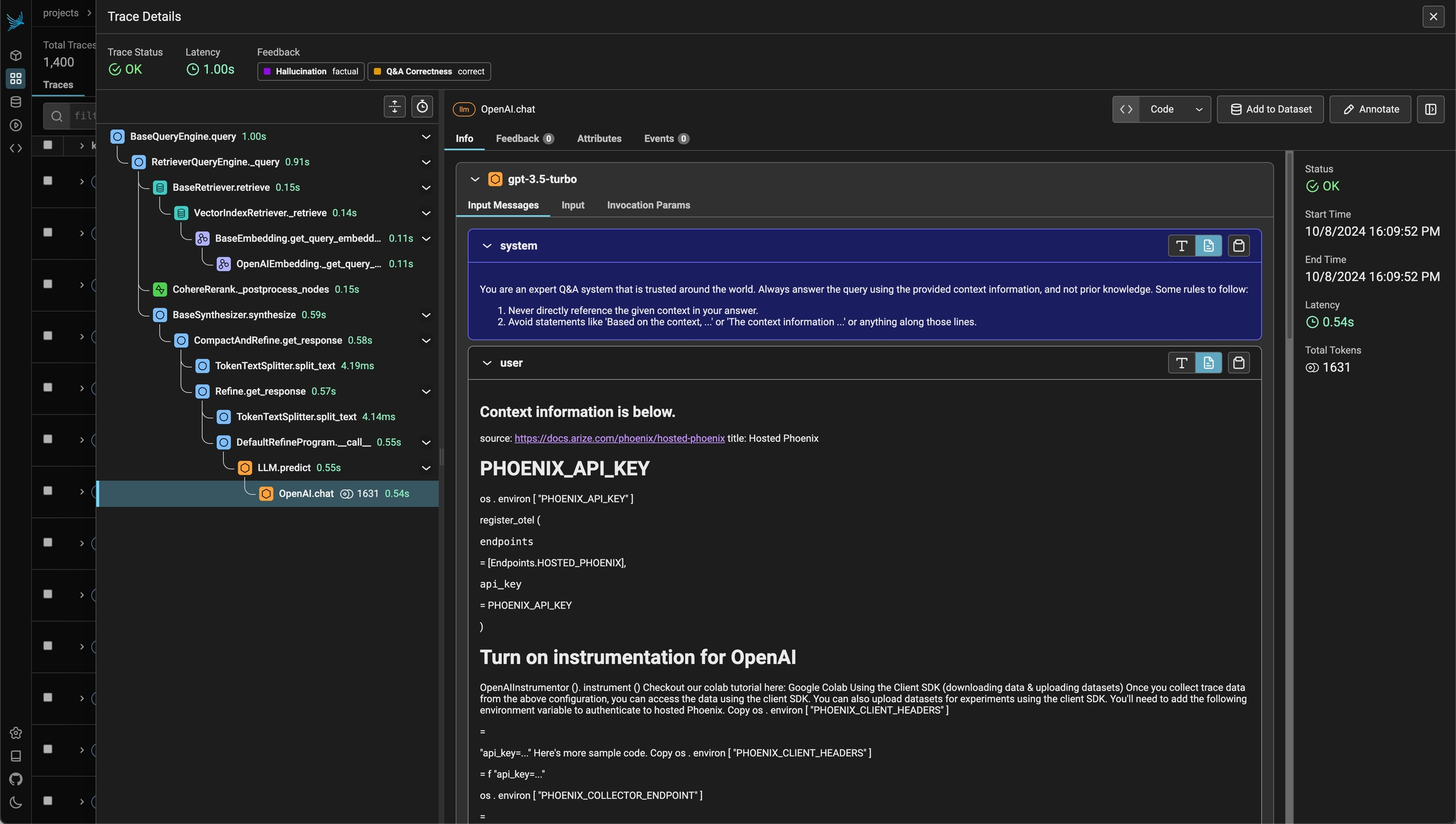 Using Phoenix's tracing capabilities can provide important insights into the inner workings of your LLM application. By analyzing the collected trace data, you can identify and address various performance and operational issues and improve the overall reliability and efficiency of your system.