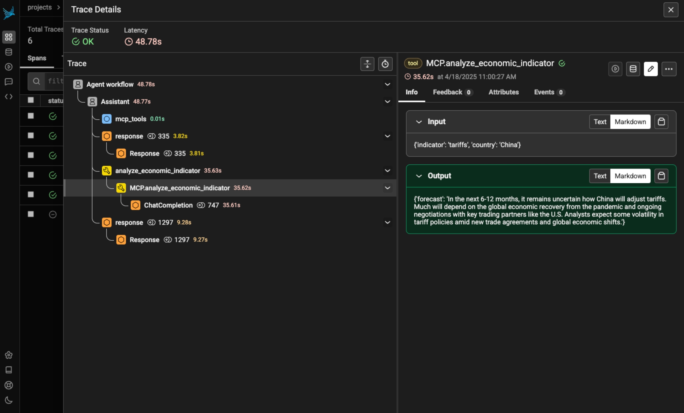 Now that you have tracing setup, all invocations of your client and server will be streamed to Phoenix for observability and evaluation, and connected in the platform.