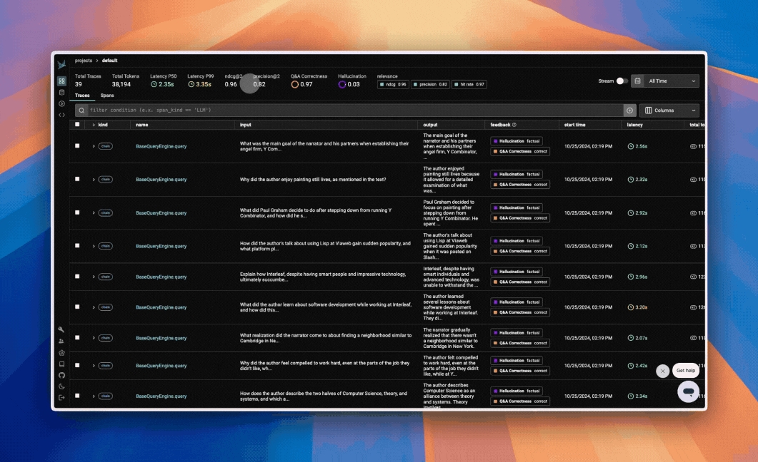 Phoenix's tracing and span analysis capabilities are invaluable during the prototyping and debugging stages. By instrumenting application code with Phoenix, teams gain detailed insights into the execution flow, making it easier to identify and resolve issues. Developers can drill down into specific spans, analyze performance metrics, and access relevant logs and metadata to streamline debugging efforts.